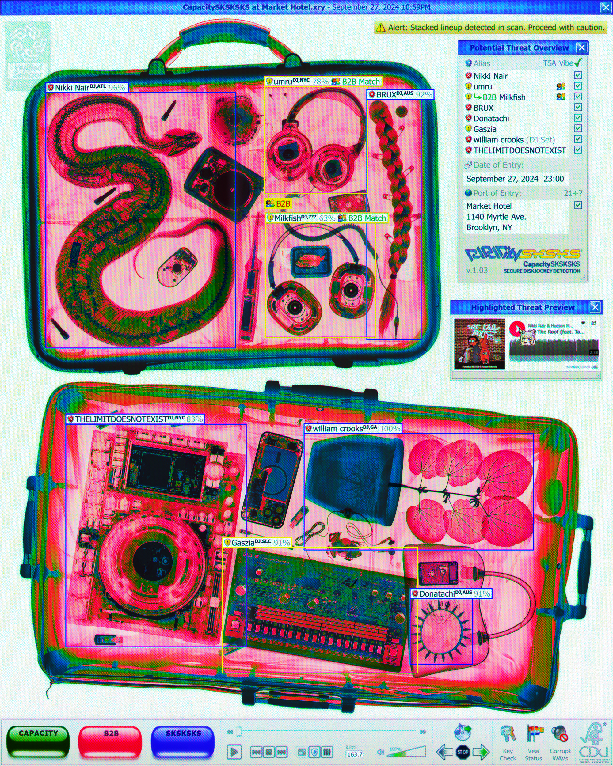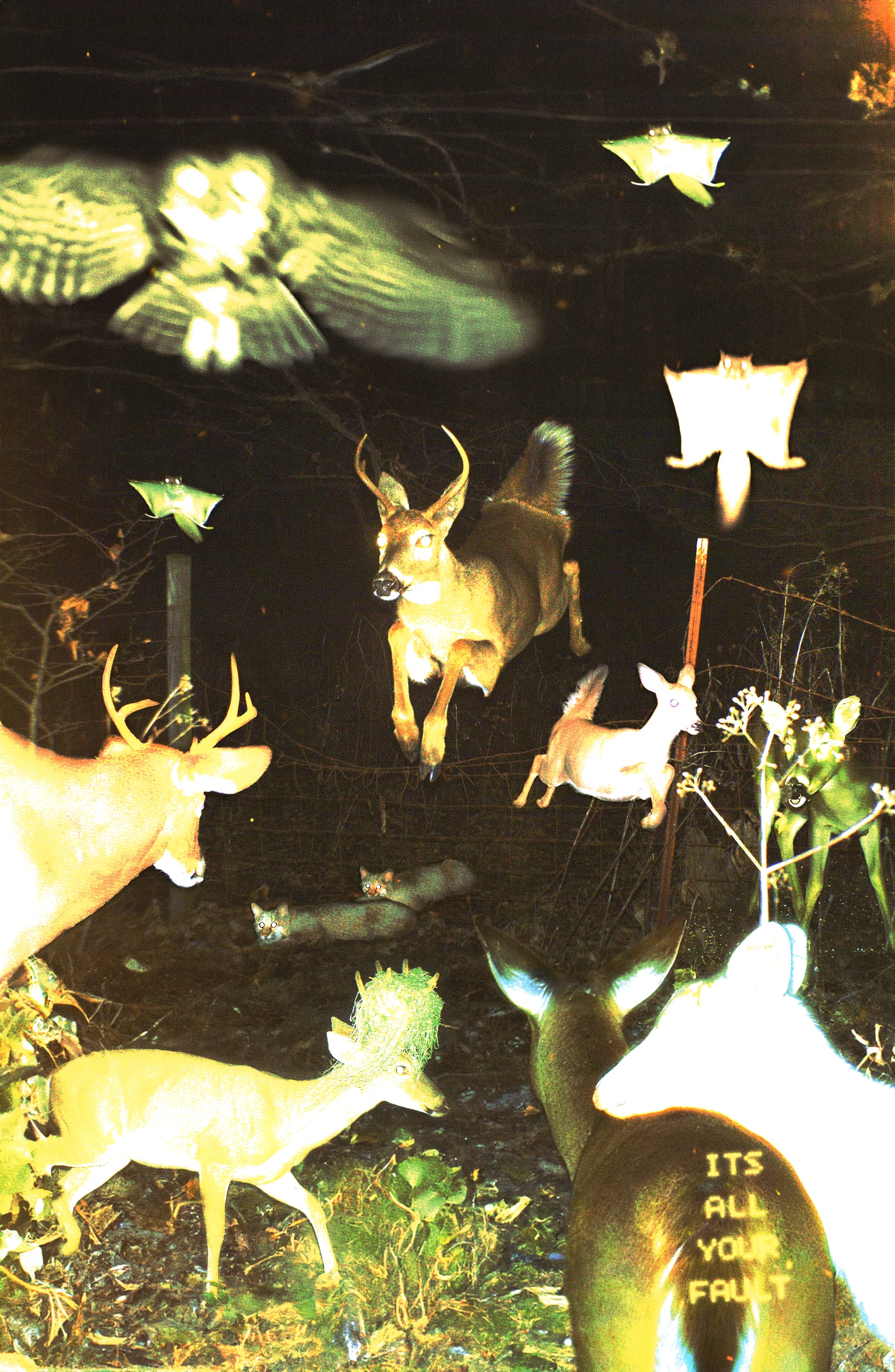 In an age where Instagram rewards algorithm-friendly sameness and our attention spans have been whittled down to splinters, a truly beautiful club flyer feels rare these days—one with not just a good lineup, not just the right alchemical combo of DJ and venue and promoter that makes for a classic night out, but something genuinely awesome to look at. That's why the graphic designer Jean-Pierre Consuegra's flyers buck the trend: They reward attention, they're rich with detail, but the designer doesn't throw too many bells and whistles in the way of advertising a good time. Consuegra's artwork is enough to make me stop my scrolling and scan a lineup for a party I'd like to see—but more than that, they're the kind of artwork I'd like to see every day, to the point that I bought a print of one of his trail cam collages (that I swear I've been meaning to frame and hang for approximately eight months).