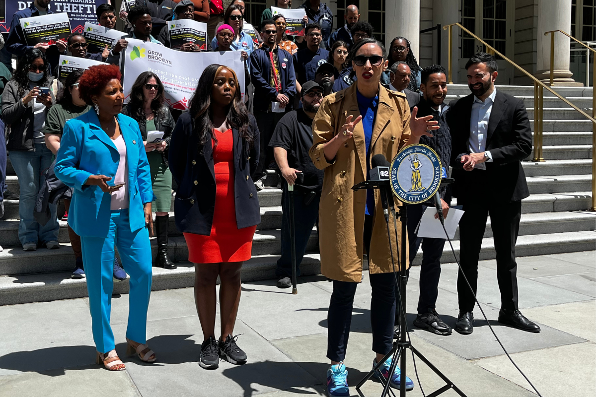 At an occasionally-fraught midday rally on the steps of City Hall on Tuesday, elected officials announced a set of measures to prevent deed theft, and stop the cycle of thousands of Black Brooklynites being stripped of their homes and their generational wealth.