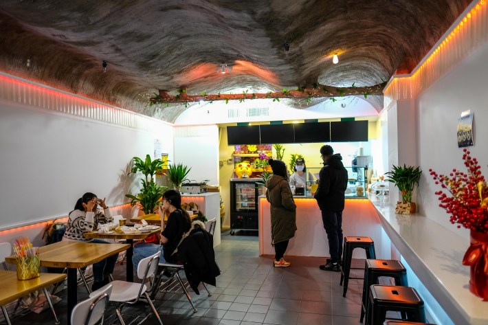 The space itself is weirdly dramatic, with a ceiling that evokes a kind of underground grotto and a water feature by the front door that burbles away throughout your meal. Still, the counter person is warm and friendly, not at all like a cave dweller, and your food comes out in a hurry. You can even bring it all outside to one of the tables on Doyers if the weather's pleasant and the lines for its neighboring eateries haven't completely taken over the street.