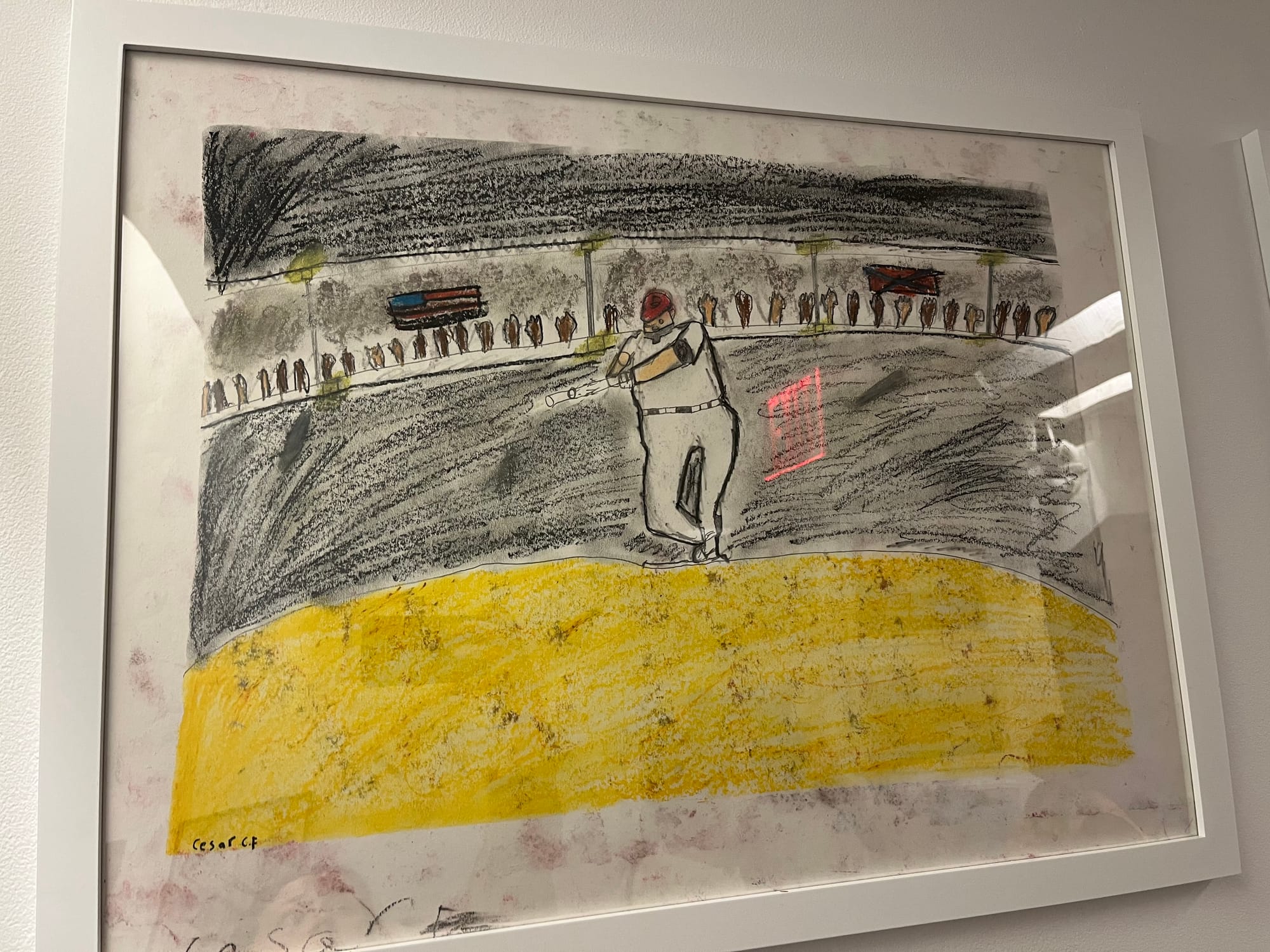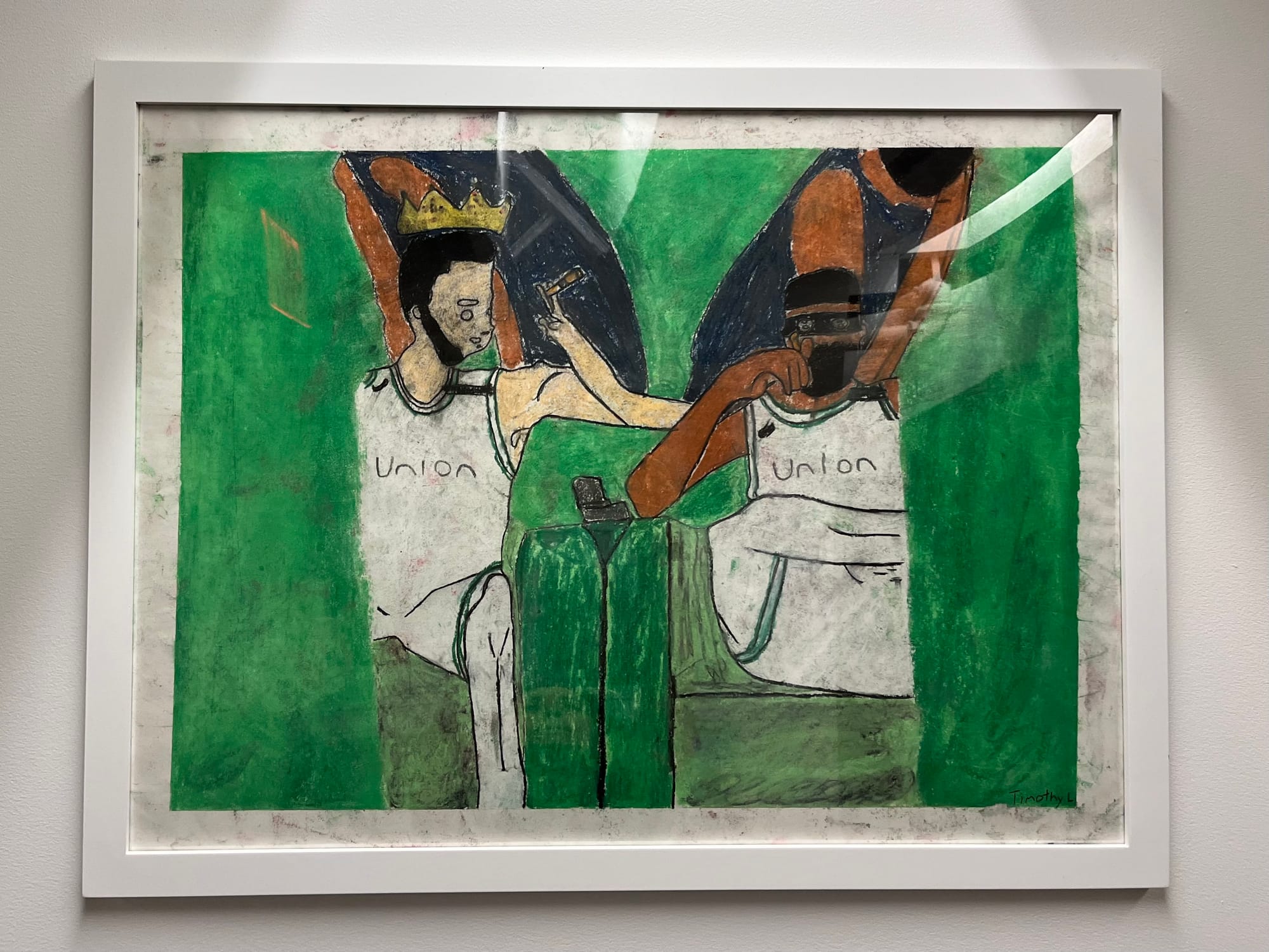 At the front of the show is work by a group of teenagers who are known as the Drawing All-Star Fellows. At the opening, they clumped together Breakfast Club-style in the stairwell and explained to me the reputations that each person in their tight-knit group had cultivated: The Clown, not to be confused with The Jester, The Nice One, and The Silent Type. At the risk of sounding like a Boomer, particularly striking to me was the fact that nobody had their phones out and everybody seemed genuinely interested in talking with each other.