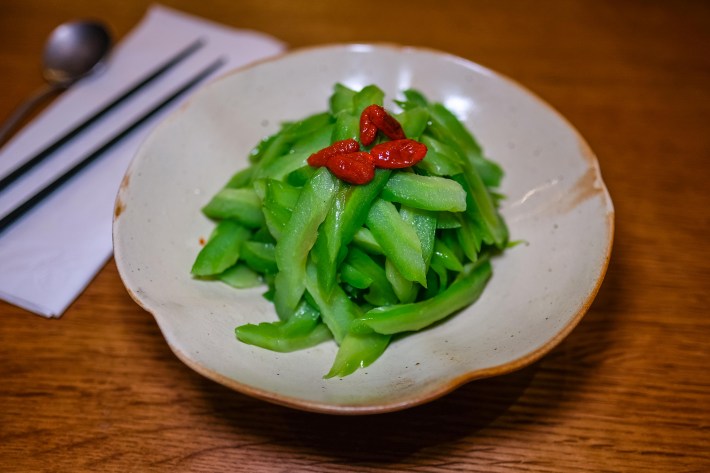 You'll probably want to split an additional, ancillary dish or three, depending on the size of your party (just for fun and also because everything is so good). The chilled bitter gourd salad, for example, makes for a welcome counterpoint to all the red meat and chili oil (be warned though: It is, indeed, quite bitter). So do the soothing chicken broth wontons. Cucumber salad, chewy chicken gizzard, and "zesty pork tongue" are among your other shareable side dish options.