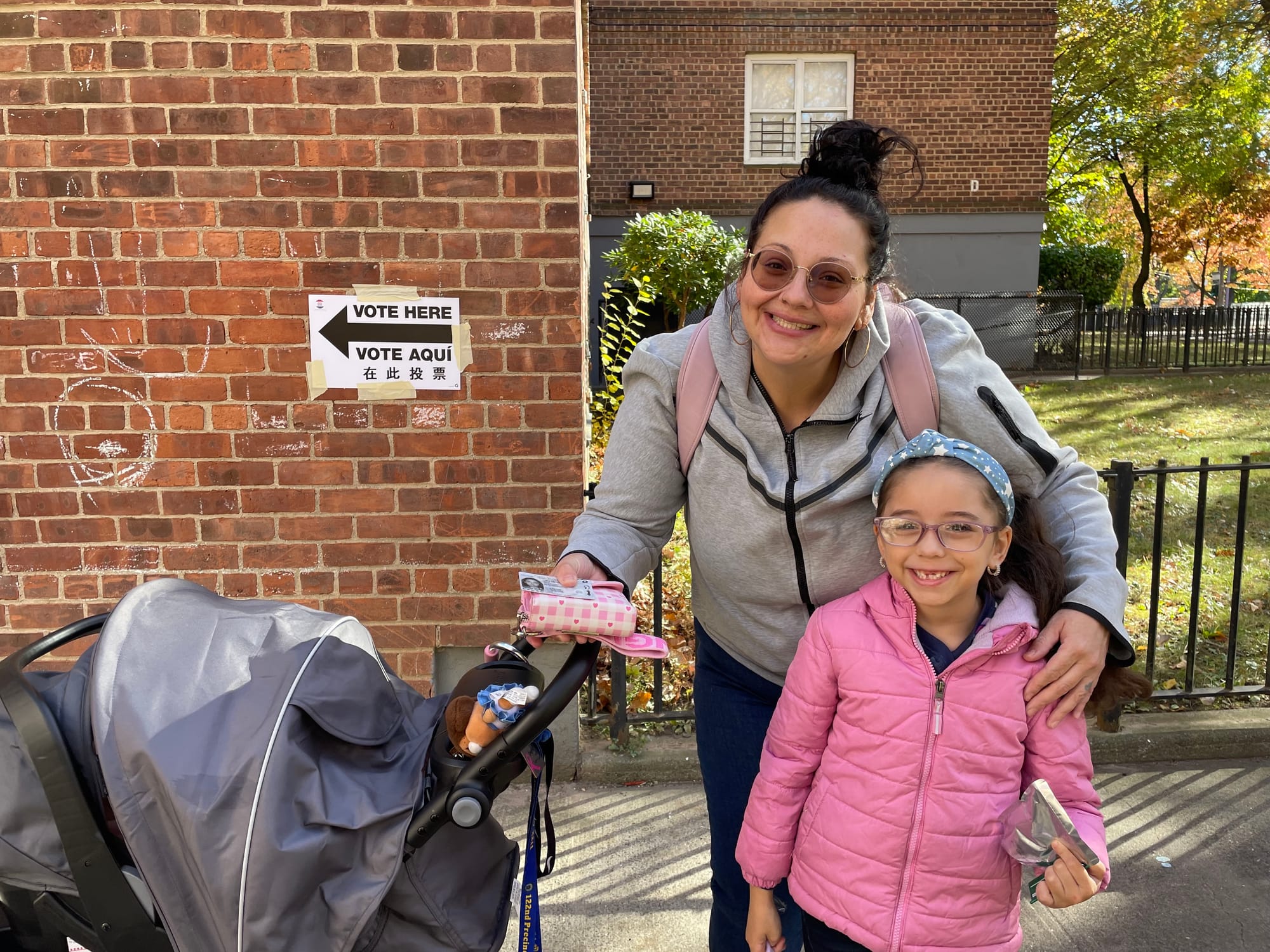 Felicia Cruz, a mom of two who brought her kids out to vote, said she voted for Trump in the presidential election because of her Christian values—but that she's since been let down by his actions, especially around the slated pause on SNAP benefits. "The choices that he's making, I see that those don't carry the fruit of the spirit for me, especially through the holidays. I don't feel like anybody should be without, especially families and children." Cruz said she was casting her vote for Mamdani. "I have to worry about my kids, you know?"