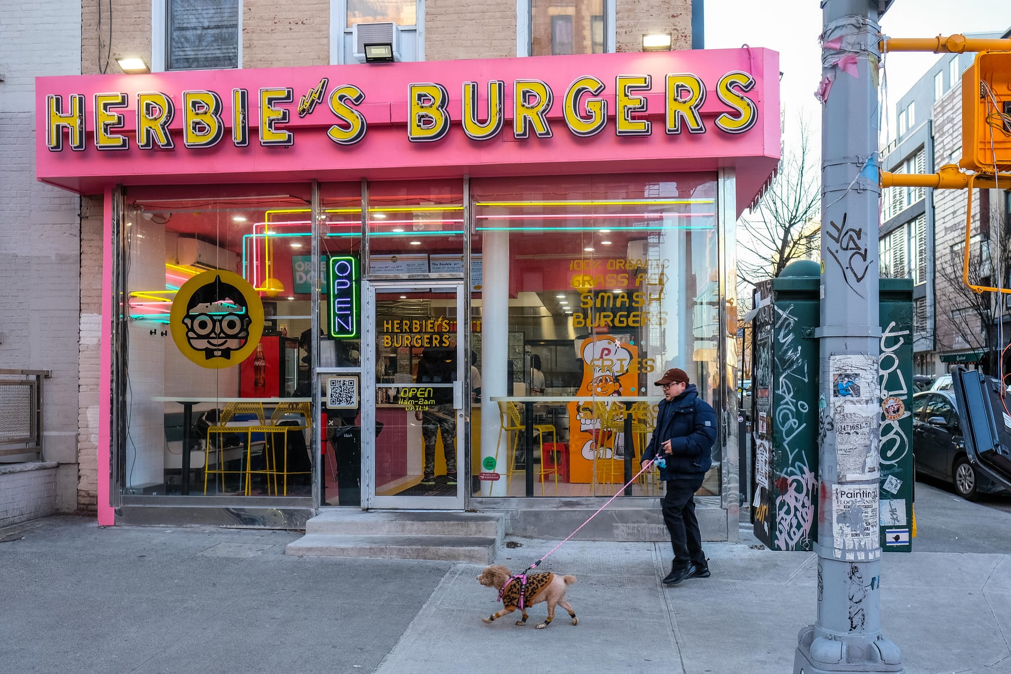 The dominant color at Herbie's is pink, which I love, and the dominant image is the chain's namesake: a half-boy, half-hamburger who, per the fake bio on the website, is "a nerd for the people" who adorns all manner of merch. Clearly, founders Nick Warchol, Aaron Wilson, and Noah Bondy put a lot of energy into Herbie's Burgers branding, which is fine and even fun, but only works if as much—or, preferably, even more—thought and care goes into the food. Fortunately, Herbie's right now is slinging nothing but bangers.