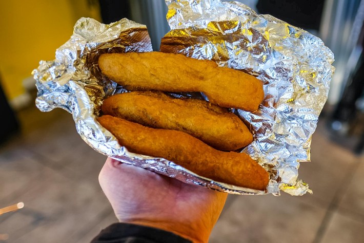 With these portions, you don't need any extras, but the festivals, a deep-fried sweet dumpling, are so good—freshly fried, slightly crisp, and just the right amount of sweet—that it's a pleasure to overindulge. My Yaadman list for my next visit includes oxtail, doubles, whatever soup Jhenell's got going on (apparently she does a goat's head on the weekend), and maybe the roast conch.