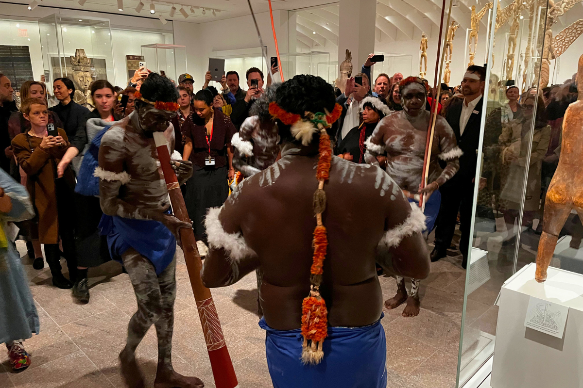 At 5:32 a.m., a lone, low voice cracked the silence inside the Great Hall of the Metropolitan Museum, soaring right up to the institution's domed ceiling. It was the opening of the museum's reconceived Oceania gallery, and standing in attendance were dozens of indigenous delegates from all corners of the Pacific Ocean. All had gotten ready in the dark, early hours of a drizzly Thursday morning to mark the moment with a pre-dawn service, before the gallery reopens to the public after a four-year hiatus this Saturday.