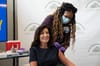 Governor Kathy Hochul receives a new COVID booster from a nurse wearing a mask at a clinic in East Harlem on Wednesday.