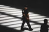 An NYPD officer walking.