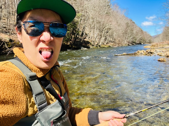 Esther Wang is on the banks of Willowemoc Creek in the Catskills.