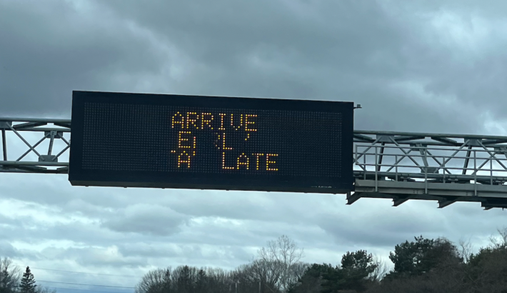 Every 15 minutes or so on the northway, on route 30, on route 8, the byways and highways of the North Country—there's a highway sign foretelling doom.