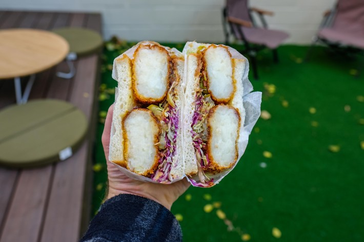 And now, a terrific little sandwich shop called Taku Sando has entered the fray, whipping up a tight menu of first-rate Japanese sandos with a decidedly American twist. Namely—unlike what you might find in, say, Tokyo, these beasts are stuffed to overflowing.