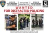 The flyer for artist collective Exit Plan's zine Distracted Policing that contains photos of NYPD officers looking at their p